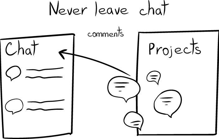 Bullet Chat is part of Bullet Projects. All tasks, and task comments get fed directly into Bullet Chat.